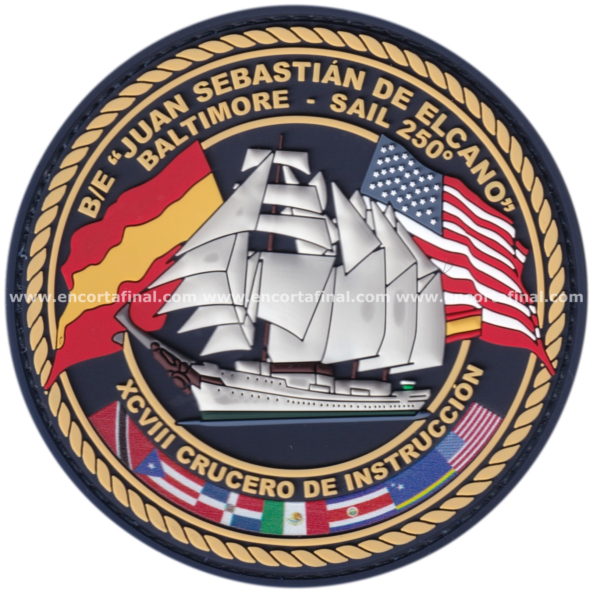 Parche Juan Sebastian de Elcano (A-71) - XCVIII Crucero de Instruccion - Sail 250 (1776-2026) - Baltimore + Iman de regalo